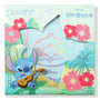 Ohana ColourPop Super Shock Highlighter compact displayed in a teal Disney Lilo & Stitch box, star-shaped window revealing the pan and holographic Stitch art, framed by red hibiscus and palms; 4.0 g (0.14 oz) collab makeup.